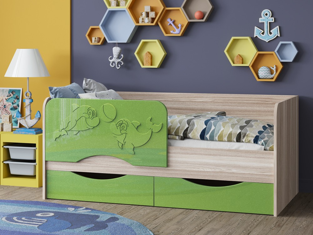 Детская Кровать Дельфин-2 МДФ с фасадом 3D/Разные Цвета